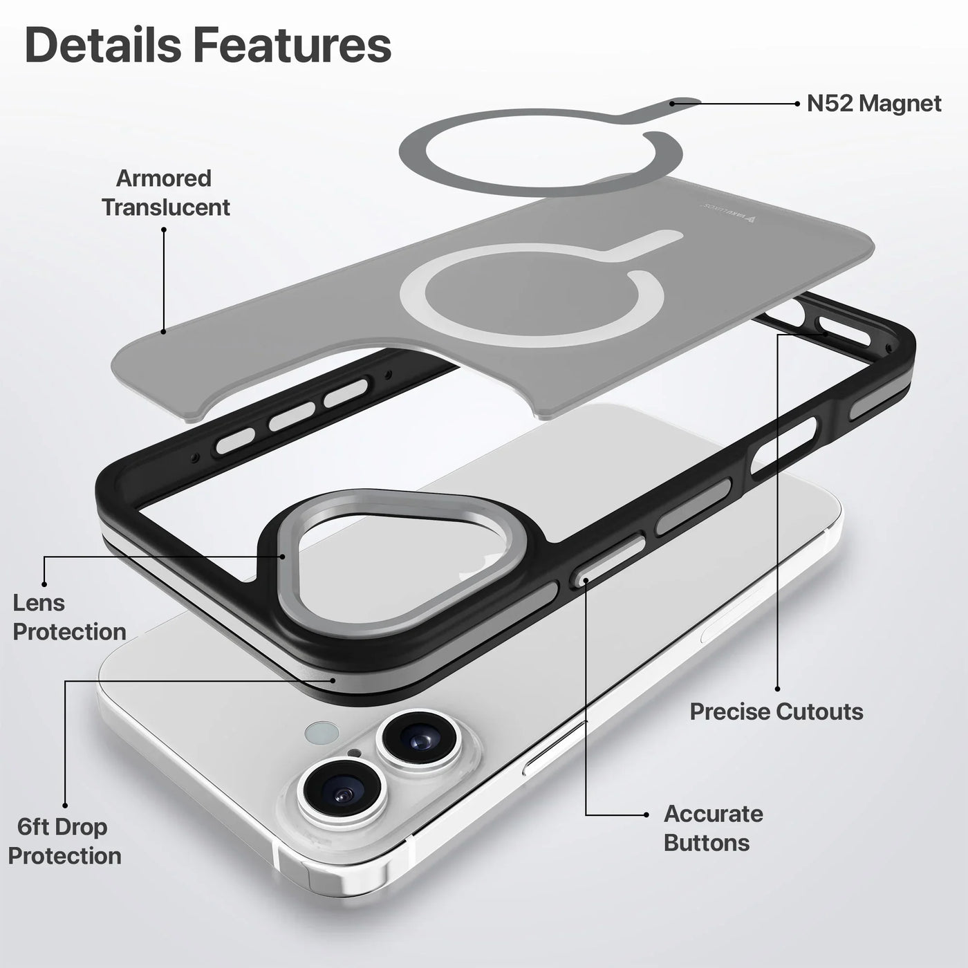 Engineered for ultimate safety, the Vaku Luxos® Elemento MagPro Case delivers military-grade drop protection with a stylish frosted back design. Built with reinforced shockproof guard corners, it absorbs impact from accidental drops while maintaining a slim, premium profile. The frosted matte back resists fingerprints and scratches, while MagPro technology ensures strong magnetic alignment for seamless MagSafe charging and accessories. A perfect balance of rugged protection and modern style.