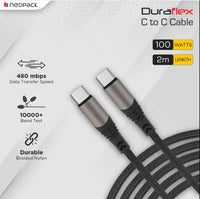Duraflex 100W Type C to C Unbreakable Nylon Braided Charing Cable (2 Mtr, Black neopack - Charing Cable